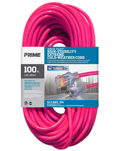 100ft 12/3 SJTW Neon Pink Extension Cord w/Primelight®