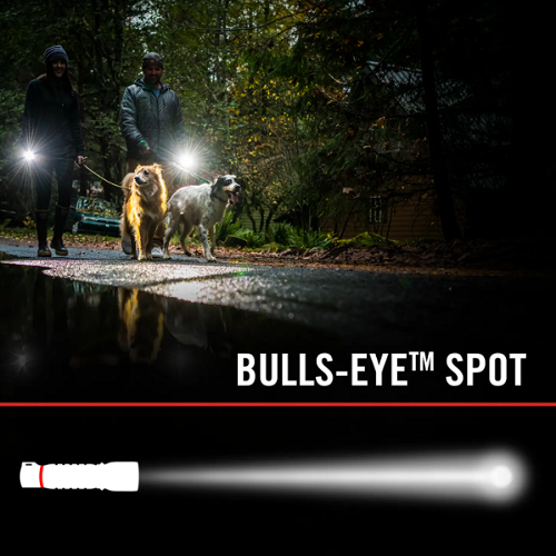 400 LUMENS | 22H | BULLS-EYE™ Spot | FIXED BEAM The G24 flashlight shines 400 lumens with a 146-meter beam—perfect for the truck, drawer, or nightstand when all you need is reliable, everyday lighting.