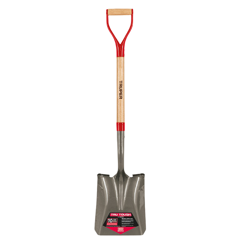 Truper Medium-Duty Grade Square-Point Shovel, 30" Wood Steel D-Handle, Midsize Steps (6) -755625305015